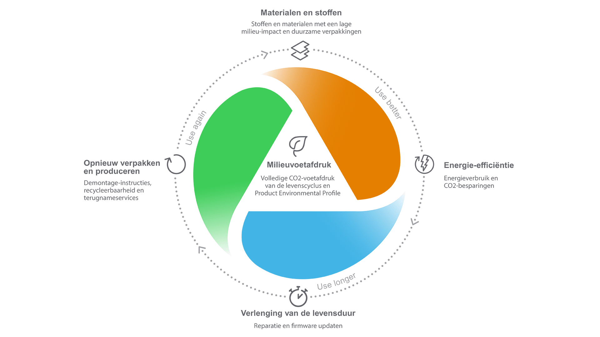 • Ontwerp: producten voor duurzaamheid, herstelbaarheid en recyclebaarheid.